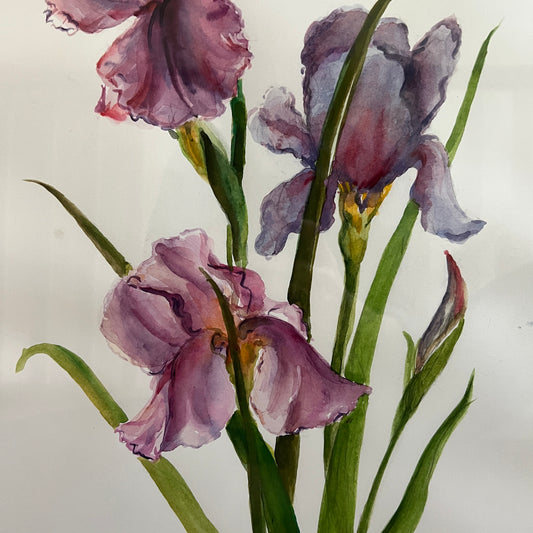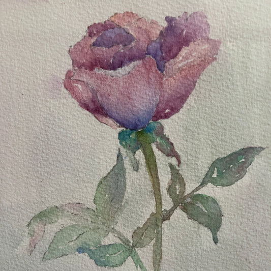 Framed & Signed Vintage Pink Rose Watercolor by BAL (1990)